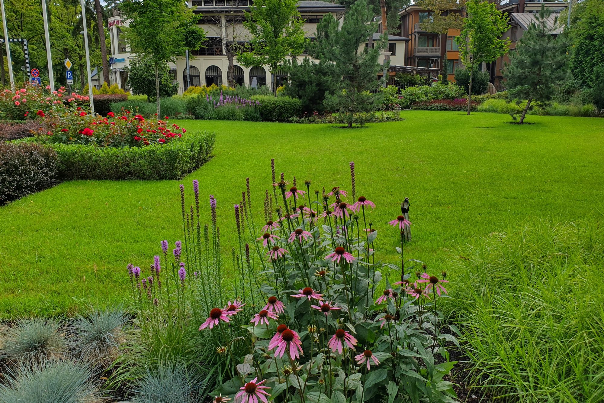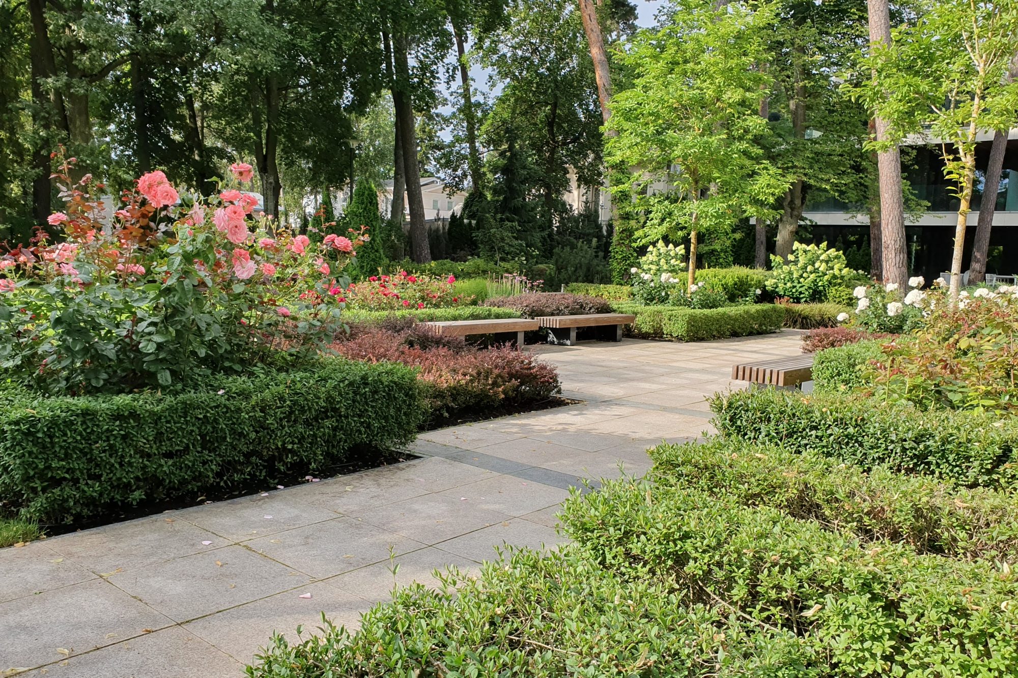 Dārzs, kas spēlējas ar meža sajūtu pilsētas centrā. Ienākot no ielas, dārzs mūs sagaida pareizs, kārtīgs un stalts – cirpti dzīvžogi un konkrētas formas. Dodoties dziļāk, ielas un pilsētas klātbūtne jau mazliet aizmirstas, jo pie kājām nokrituši čiekuri un no dobēm spraucas laukā nepaklausīgs un brīvs priedes zars. Kopumā stādījumi veidoti krāšņi, bagātīgi un daudzveidīgi, lai radītu šo dažādo dārzu atmosfēru, bet tajā pat laikā priecētu gan ziemā, gan vasarā.